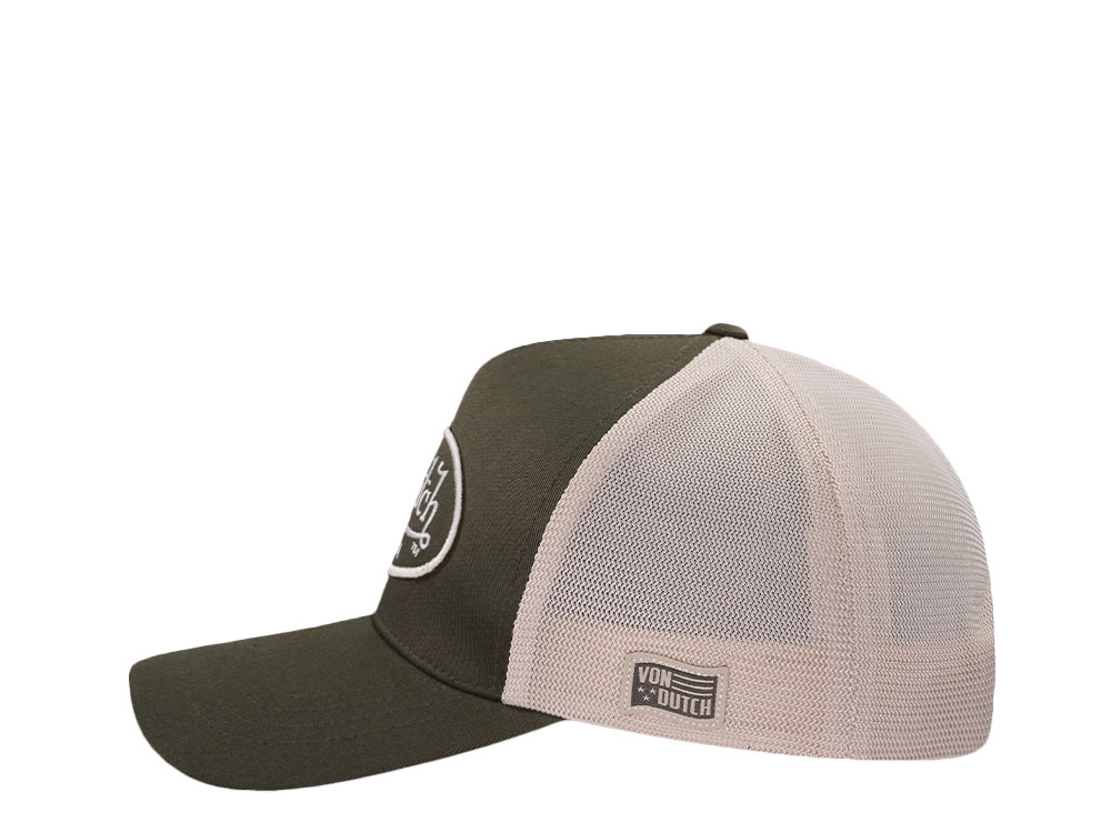 Von Dutch Embroidered Oval Patch Olive Trucker Strapback Cap